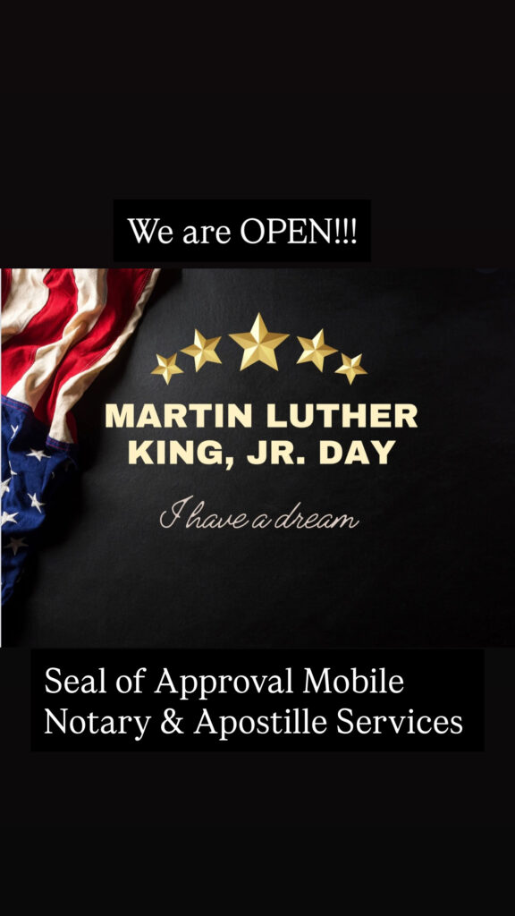 Today, we honor the life and legacy of Dr. Martin Luther King Jr.—a leader who reminded us that service, unity, and compassion move communities forward. At Seal of Approval Mobile Notary & Apostille Services, we carry that spirit into our work by showing up for our community when it matters most. While many notary offices […]